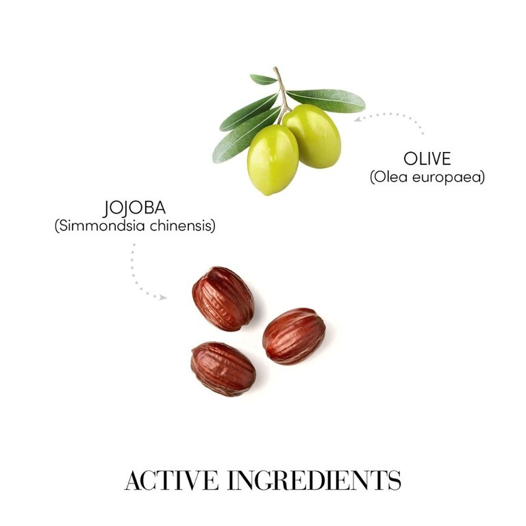 - Huile de jojoba : Ses propriétés antioxydantes et protectrices confèrent à la chevelure nutrition, luminosité et lustre. Régénère, renforce et hydrate intensément les cheveux secs et déshydratés ou qui ont été fragilisés par des traitements chimiques.