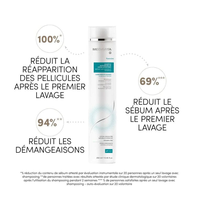Il existe différents types de pellicules et la spécialité de Puroxine est de toutes les combattre avec le même pouvoir purifiant. Le secret de ce soin antipelliculaire réside dans l'action combinée de la Myrrhe, de la piroctone olamine et de l'acide salicylique qui limitent la prolifération bactérienne et la desquamation, réduisant la quantité de micro-organismes (Pytirosporum) responsables des démangeaisons.