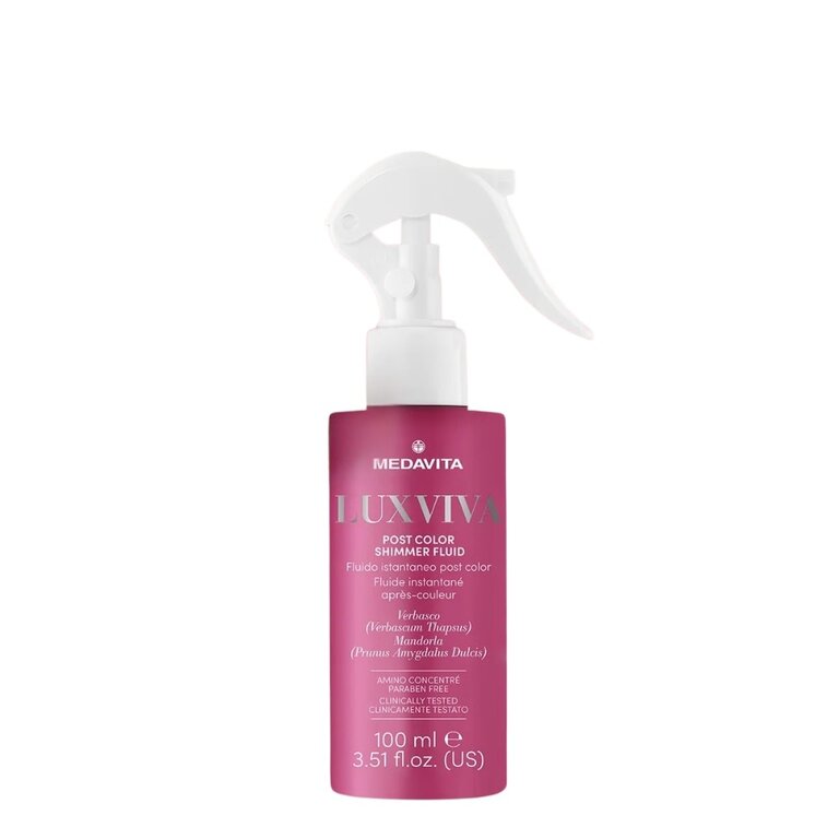 Offrez à votre chevelure un rituel de soin post-coloration digne des plus grands salons avec le fluide instantanée après-couleur "Luxviva Post Color Shimmer Fluid" de Medavita. Enrichi d'acides aminés et d'acides gras, ce bijou capillaire dépose un voile de brillance sur chaque mèche, révélant une luminosité exceptionnelle. Agissant comme un bouclier pour vos cheveux fraîchement colorés, il scelle les pigments pour empêcher le dégorgement et préserver l'intensité chromatique. En parallèle, il hydrate et répare la fibre capillaire, la rendant incroyablement forte et soyeuse, sans jamais la dessécher.