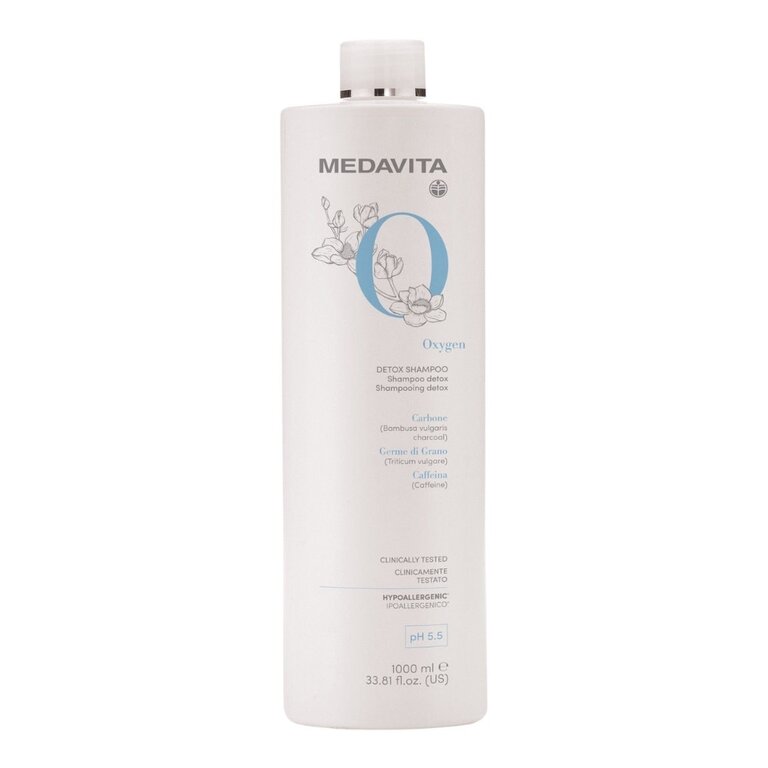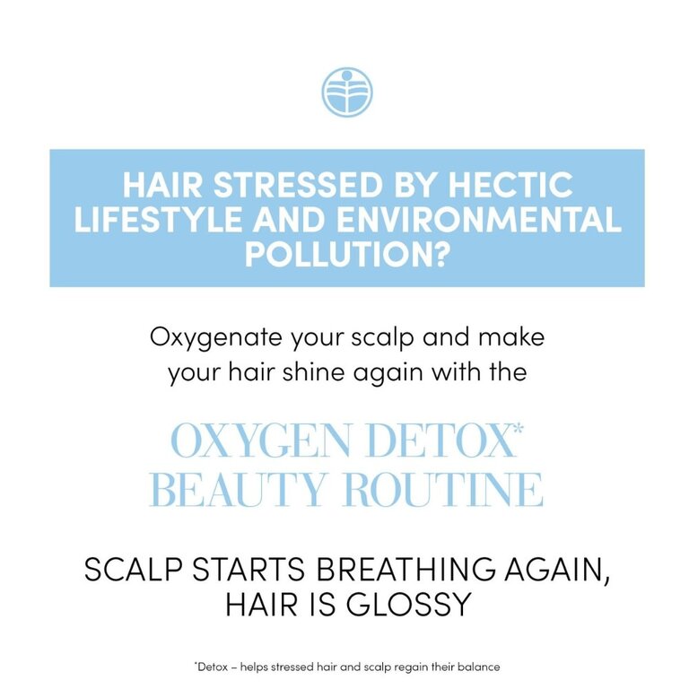 Le shampoing detox Oxygen libère du sébum et des toxines, redonne aux cheveux et au cuir chevelu leur vitalité et leur énergie et en prévient les déséquilibres et les anomalies, grâce à l’action du charbon de bambou, de la caféine et de l’extrai