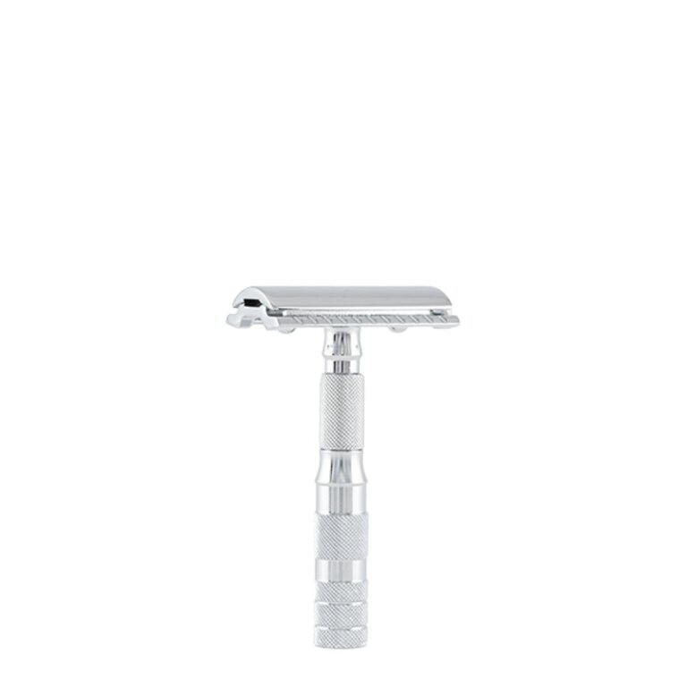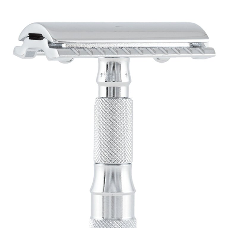 Avec la poignée compacte, le rasage est fluide et agile et le peigne fermé est un outil polyvalent pour le rasage humide classique. L'espace généreux entre les lames permet un débit élevé de savon et protège la tête du rasoir contre le colmatage par des poils ou des résidus de mousse.