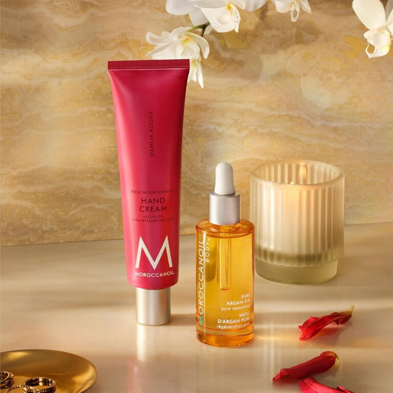 Alliez confort et élégance avec la crème pour les mains Dahlia Rouge Moroccanoil. Ce soin concentré en antioxydants et en nutriments essentiels revitalise les mains les plus sèches et protège les cuticules. La peau retrouve son élasticité naturelle sous l'action du beurre de karité et de l'acide hyaluronique. L'expérience sensorielle est complétée par une fragrance sophistiquée de tubéreuse et de bois de santal.