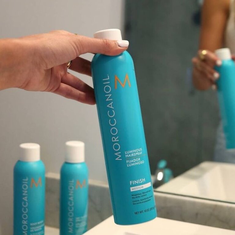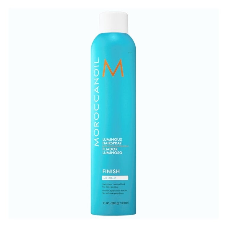 La laque lumineuse médium "Finish Medium Luminous Hairspray" de Moroccanoil est un vaporisateur de finition à tenue souple et prolongée qui maintient en douceur les coiffures naturelles, repousse l'humidité, combat les frisottis et rehausse la brillance. Sa formule enrichie d'argan riche en antioxydant est facile à travailler et sans lourdeur tout en procurant un fini non collant qui s'élimine facilement par un simple brossage.