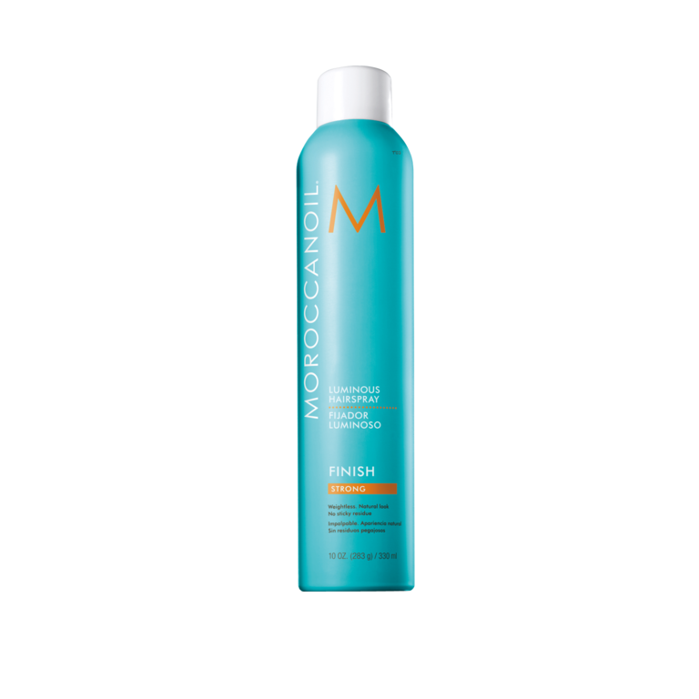 La laque lumineuse forte "Finish Strong Luminous Hairspray" de Moroccanoil est un vaporisateur de finition à tenue malléable et ferme qui maintient les coiffures en place, repousse l'humidité, combat les frisottis et rehausse la brillance. Sa formule enrichie d'argan procure un fini non collant et idéal pour les coiffures attachées, comme base pour la préparation des tresses ou pour obtenir une tenue longue durée pour la mise en plis.
