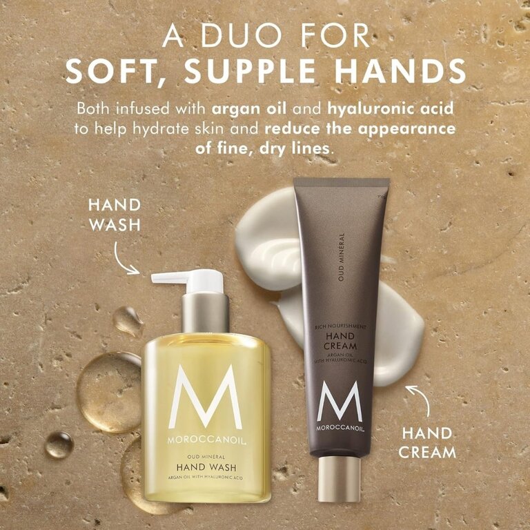 Inspiré des soins de la peau, découvrez un nettoyage en douceur avec le savon pour les mains Oud Minéral "Hand Wash" de Moroccanoil. Sa formule est enrichie d'huile d'argan riche en antioxydants et d'acide hyaluronique permettant d'optimiser la rétention de l'hydratation, convenant à tous les types de peaux.