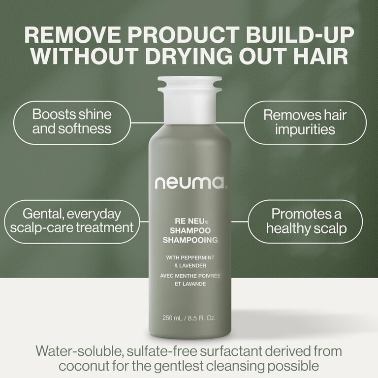 Alliez science végétale et efficacité professionnelle avec le shampoing "Re Neu" signé Neuma. Cette formule clarifiante revitalise la fibre capillaire tout en préservant son équilibre naturel.