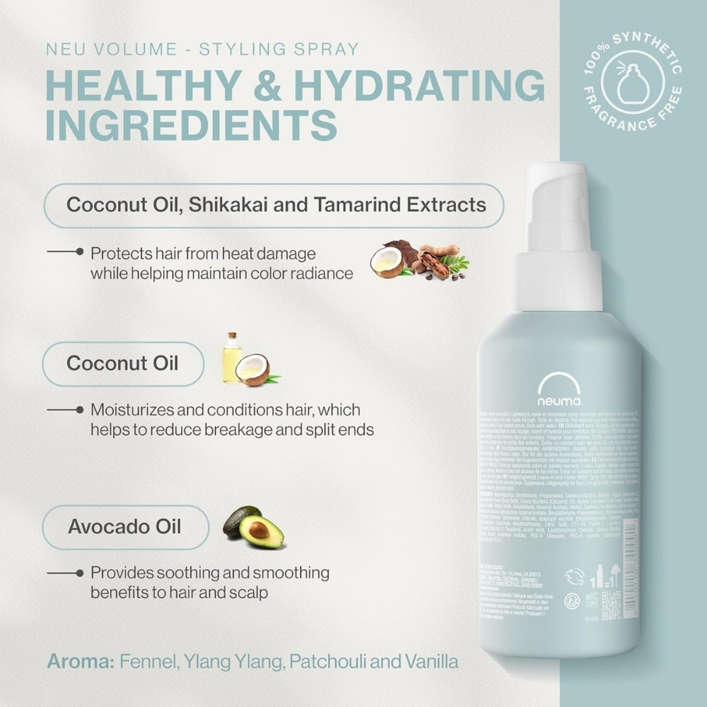 S'inscrireSpray volumateur stylisant "Neu Volume" avec huile de noix de coco et huile d'avocat - Ajoute de l'ampleur, de la légèreté et de la brillance (200ml/6.7oz)