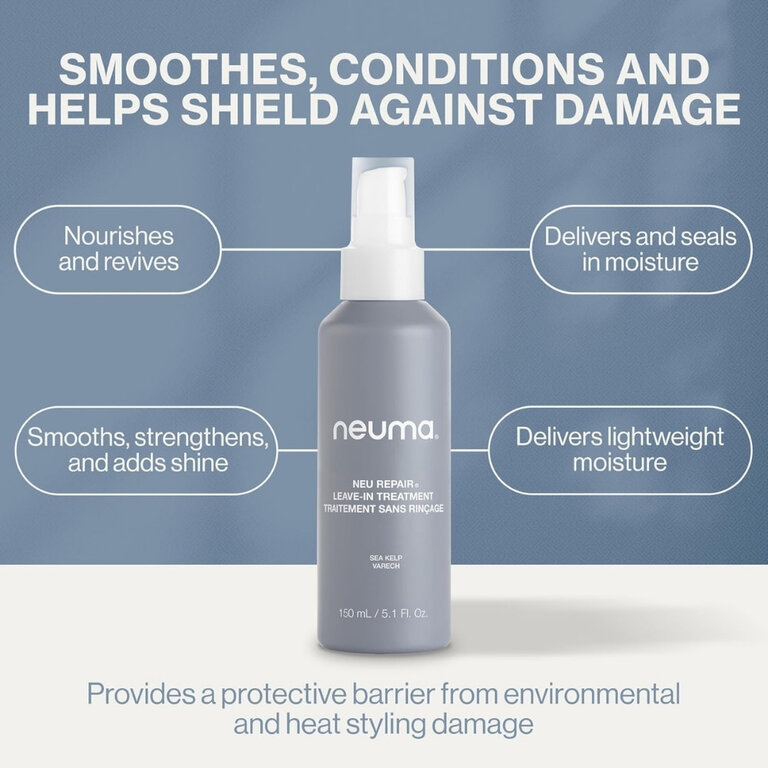 Le traitement sans rinçage "Neu Repair" de Neuma restaure les cheveux abîmés en alliant nutrition aérienne et protection thermique avancée. Sa formule botanique scelle la fibre capillaire pour prévenir la casse et la déshydratation tout en érigeant un véritable bouclier contre les agressions du coiffage. Profondément revitalisée, la chevelure retrouve une texture soyeuse, une force durable et un éclat naturel.