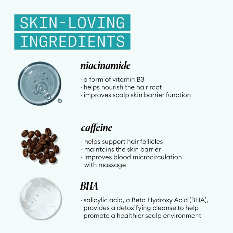 - BHA : L'acide salicylique assure un nettoyage détoxifiant en profondeur pour maintenir un cuir chevelu sain.