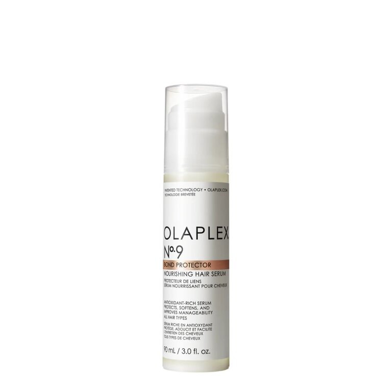 Le sérum nourrissant N°9 "Bond Protector Nourishing Hair Serum" d'Olaplex est un soin capillaire antioxydant qui protège instantanément les cheveux de la pollution et des dommages causés par la chaleur, tout en leur apportant une brillance satinée et en réduisant l'électricité statique et les nœuds.