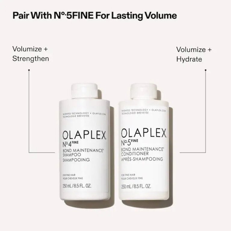Le shampoing N°4 Fine d'Olaplex réinvente la densité des cheveux fins grâce à sa précision moléculaire. Sa formule cliniquement prouvée révèle une fibre 2x plus forte, 2x plus de volume instantané et 60 % moins de cassures.