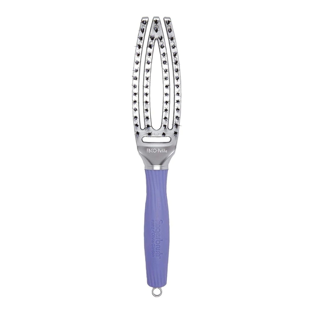 La brosse incurvée et ventilée avec poils ioniques et de sanglier "Fingerbrush" d’Olivia Garden possède un design ergonomique articulé, qui épouse la forme de la tête.
