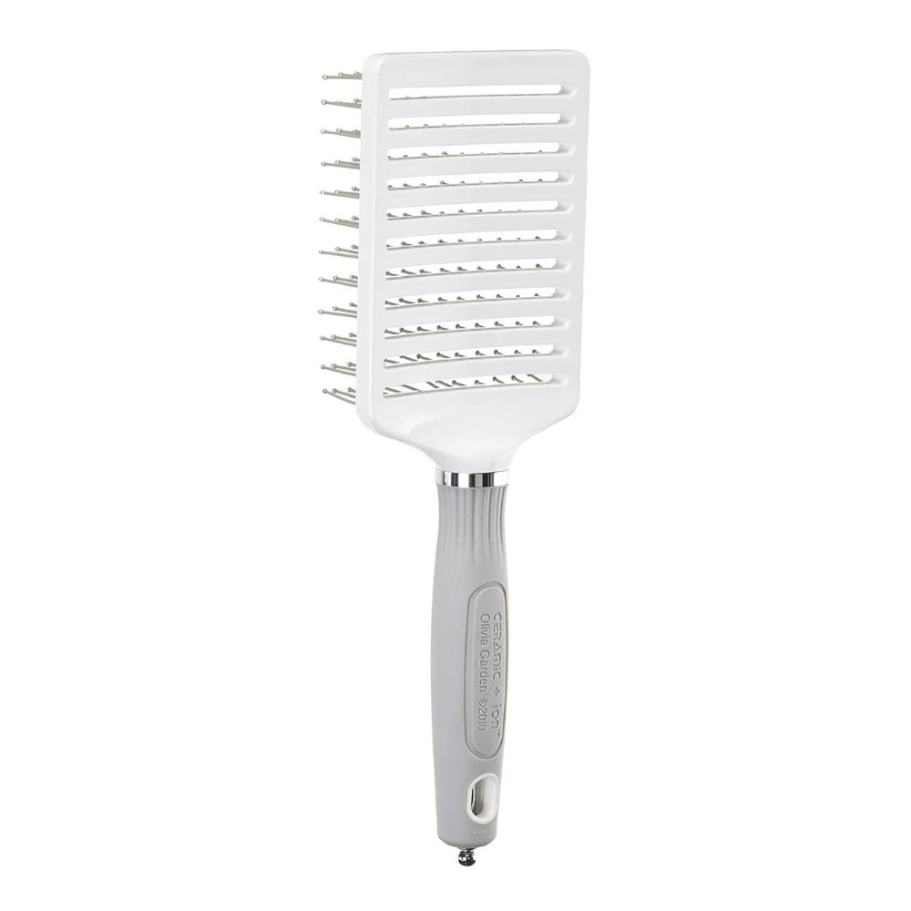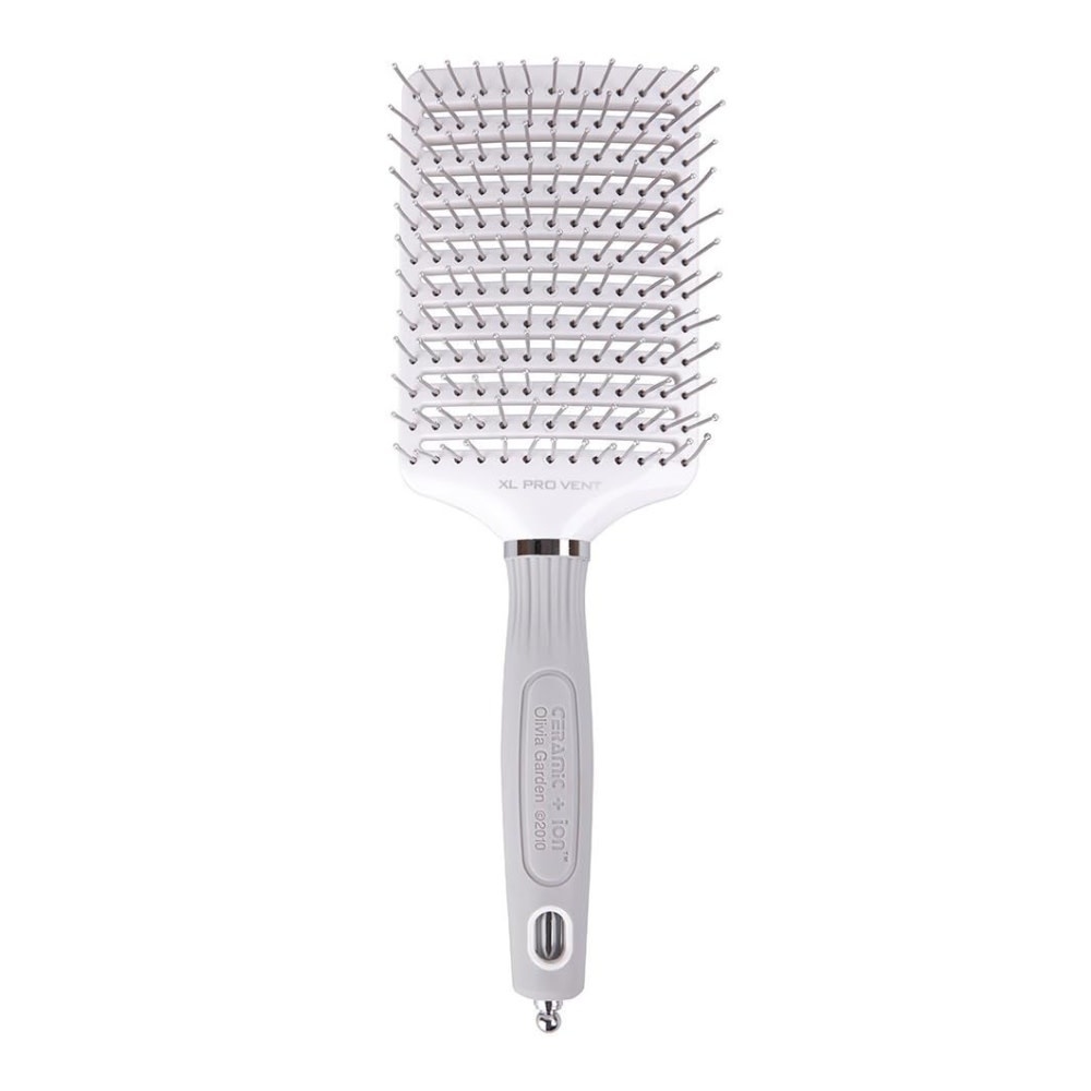 La brosse Olivia Garden "Ceramic + Ion XL Pro Vent" est une brosse ventilée dotée de technologie céramique et ionique, conçue pour rendre le coiffage plus rapide et plus efficace. La largeur de ses ouvertures permettent à l’air du sèche-cheveux de circuler librement, ce qui accélère le séchage et répartit mieux la chaleur, tout en réduisant les dommages et en améliorant le lissage.