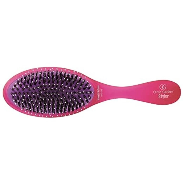 La brosse coiffante Olivia Garden possède des poils mixtes de nylon et de sanglier pour une expérience de coiffage supérieure de tous les types de cheveux et aussi pour les extensions. Élimine les mèches rebelles pour un fini lisse et brillant.