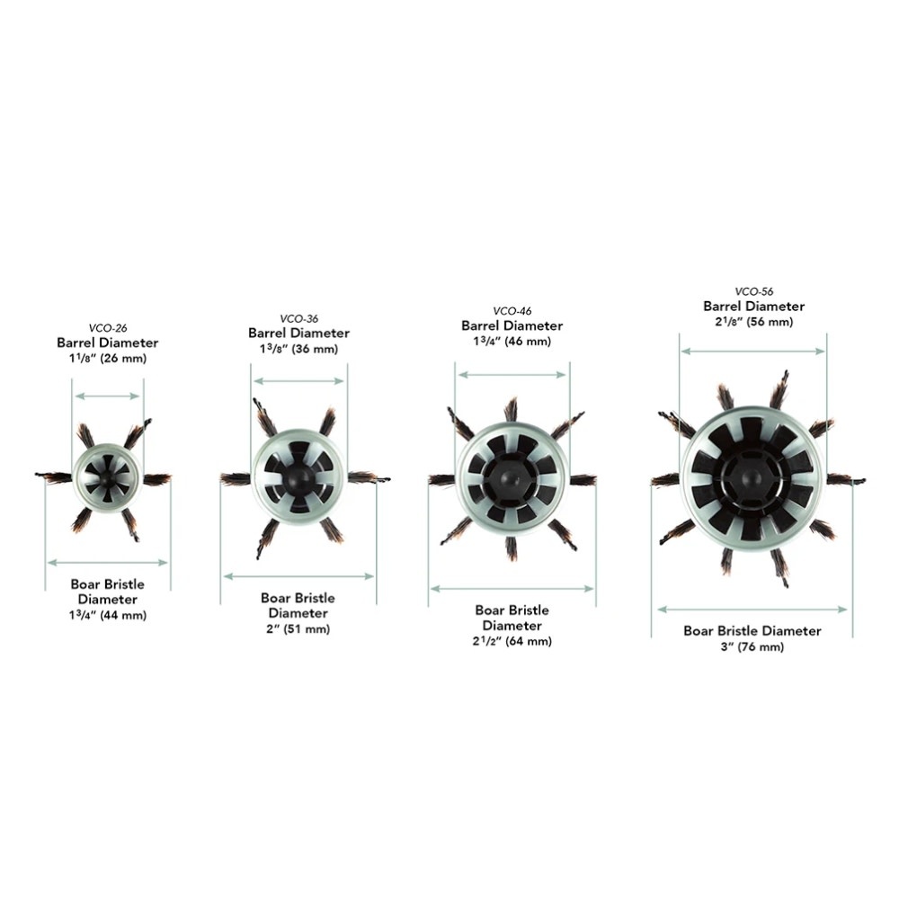 Contrairement aux standards habituels, le diamètre indiqué pour le modèle "ThermoVent" inclut les poils de sanglier et non seulement le barillet.