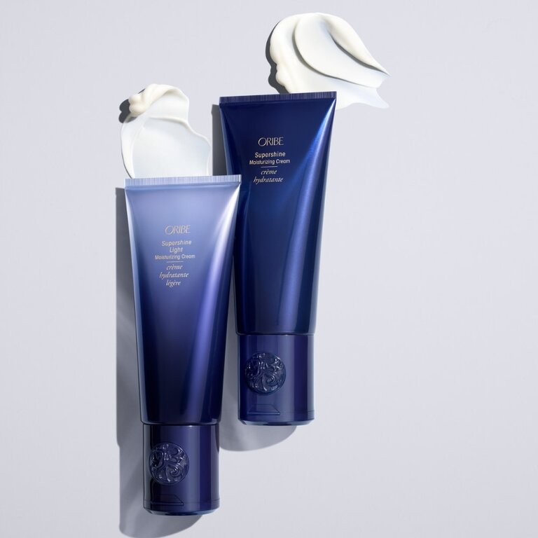 La crème revitalisante sans rinçage "Supershine" de Oribe est hautement brillante et conçue pour les cheveux moyens à épais ou longs pour hydrater et dompter les frisottis. Thermo-protectrice, elle restaure la douceur pour des cheveux lustrés, chaque jour
