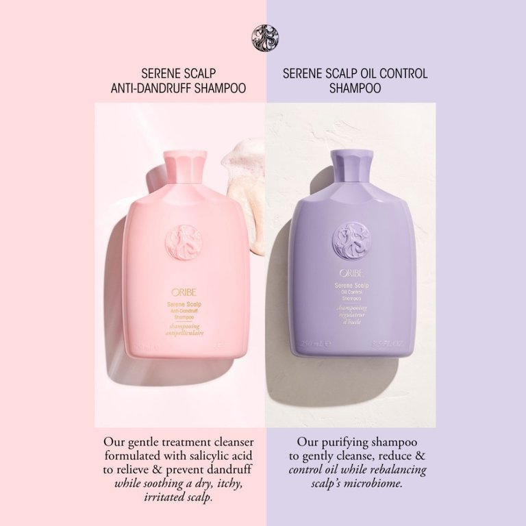 Le shampoing régulateur d'huile "Serene Scalp Oil Control" d'Oribe nettoie en douceur et purifie le cuir chevelu et les cheveux pour permettre d'espacer le temps entre les lavages. Sa formule est enrichie d'acide aminé biomimétique, d'algues marines et de prébiotiques dérivés du sucre qui permettent de réduire et de contrôler le sébum tout en rééquilibrant le microbiome du cuir chevelu.