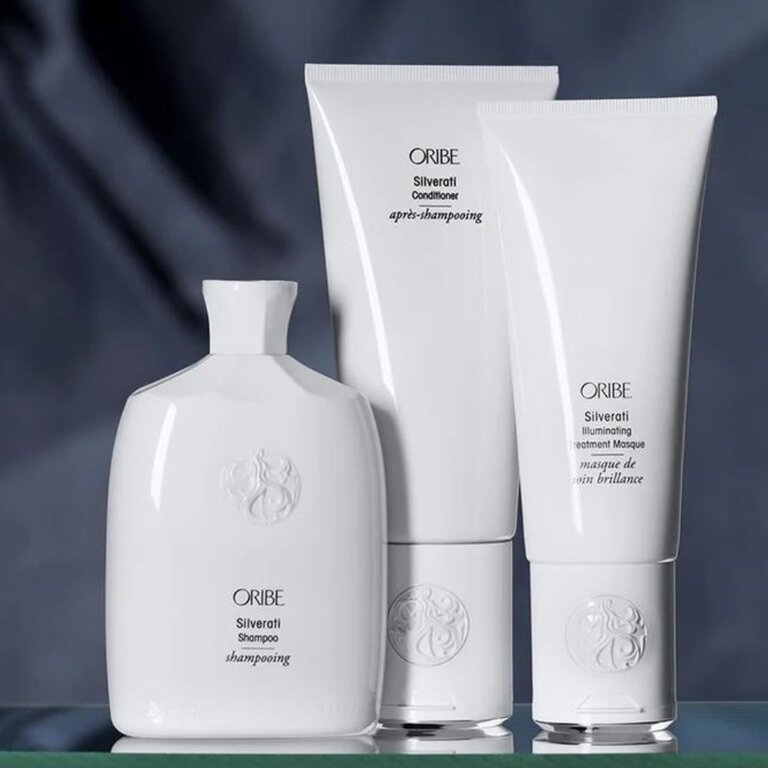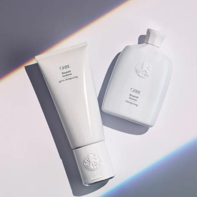 Le shampoing illuminateur "Silverati" d'Oribe est spécialement formulé pour les cheveux blancs et gris. Il éclaircit et illumine les teintes grises, argentées et blanches, tout en éliminant les tons dorés indésirables.
