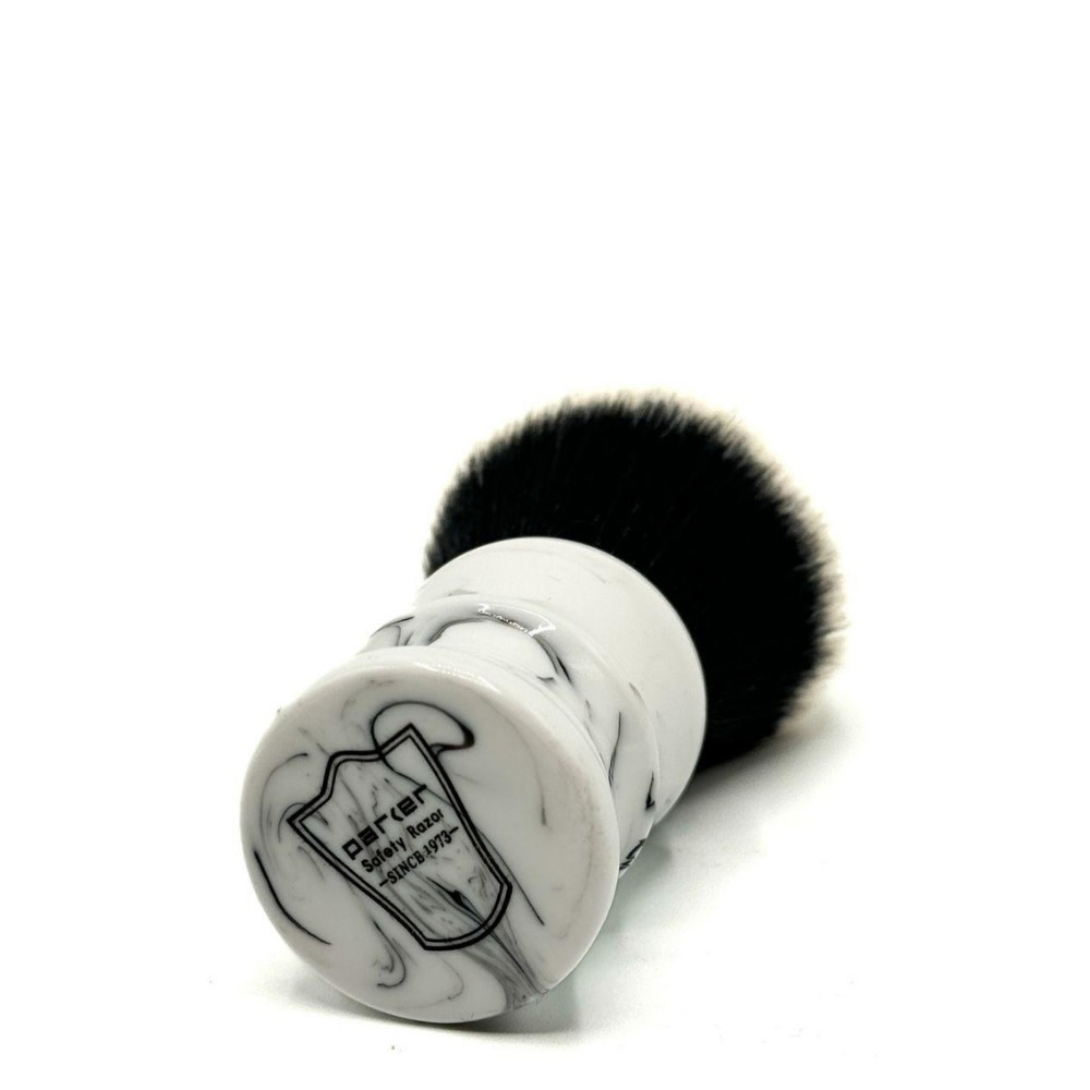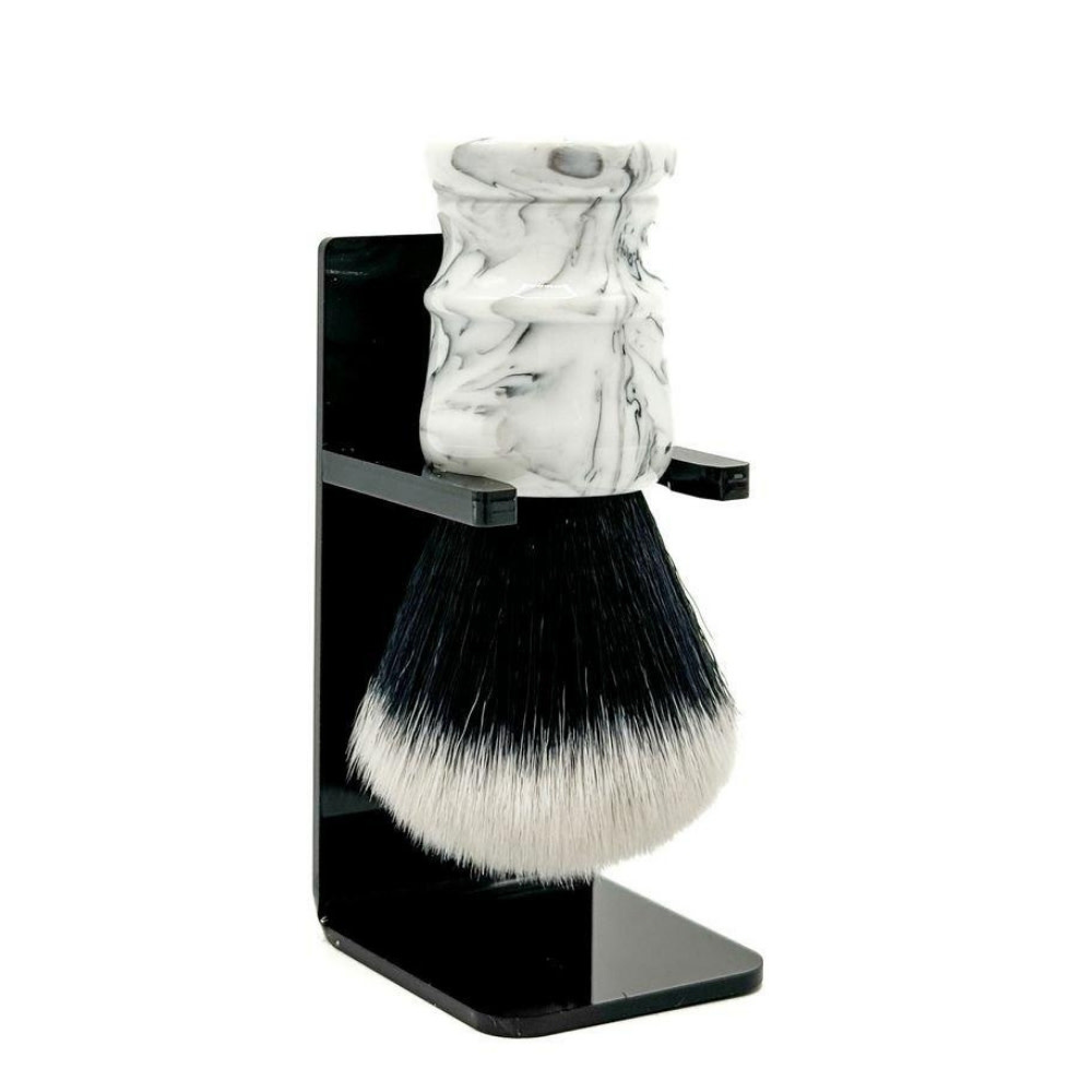 Son manche en résine marbrée blanc et noir, élégant, brillant et ergonomique, assure une prise en main confortable et un contrôle optimal. Durable, moderne et polyvalent, ce blaireau convient autant aux barbiers professionnels qu’aux utilisateurs recherchant une performance haut de gamme sans entretien complexe.