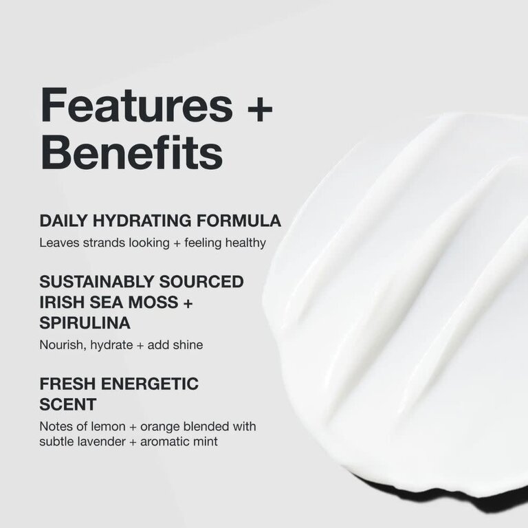 • Mousse de mer d'Irlande et spiruline : Issus de sources durables, ses actifs hydratent et ravivent les cheveux secs tout en augmentant la brillance et en aidant à prévenir les dommages.
