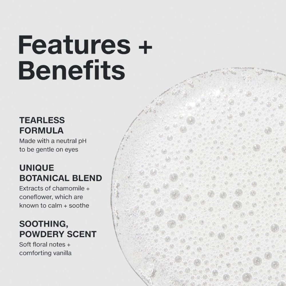 Gardez l'heure du bain amusante. Idéal pour les enfants de tous âges, ce shampoing pour bébé nettoie en douceur les cheveux tout en étant sans larmes. Il a un pH neutre qui le rend doux pour les yeux ainsi qu'un mélange unique d'extraits qui aident à hydrater et à prévenir la perte de nutrition. Les extraits de camomille et d'échinacée calment et apaisent.