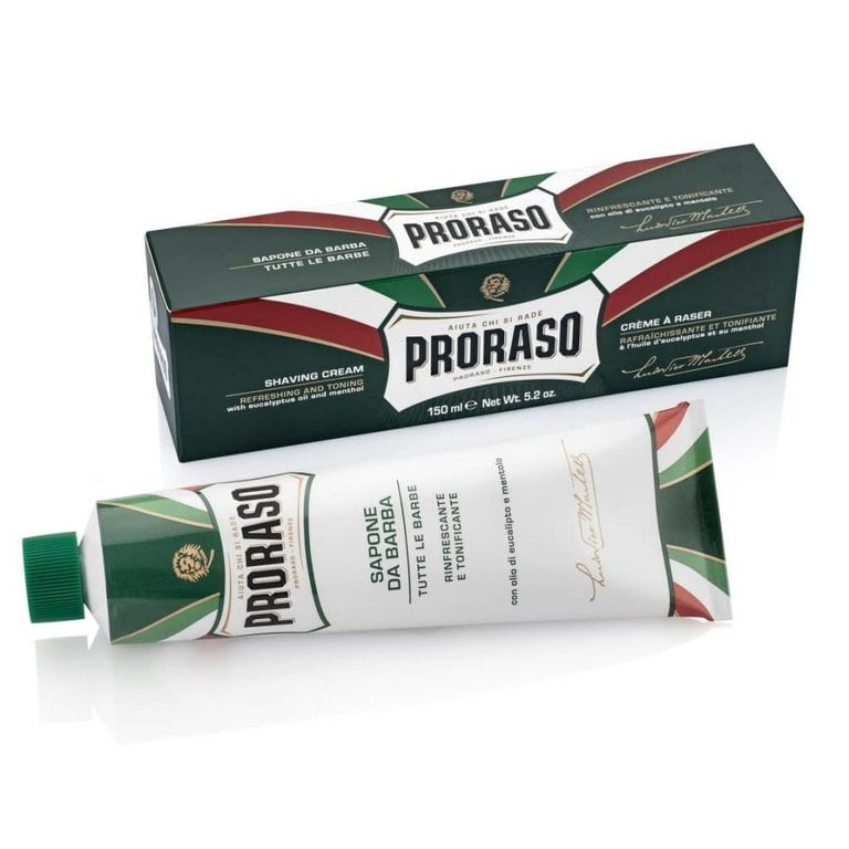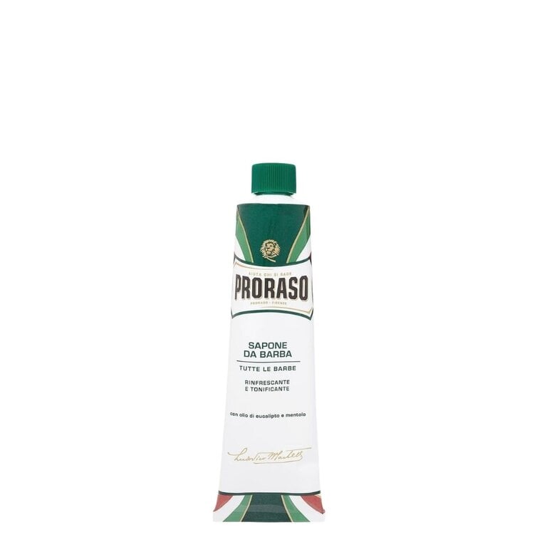 Le classique du rasage Proraso original. Ce savon à raser rafraîchissant et tonifiant est formulé pour n'importe quelle barbe de n'importe quel homme. Ce savon crémeux produit une mousse épaisse et élastique et est enrichi d'ingrédients naturels qui le rendent particulièrement concentré et riche. Fabriqué avec un procédé spécial «savon chaud», il mûrit en petites quantités pendant 3 jours, produisant un savon extrêmement épais et crémeux qui produit une mousse douce et riche. L'huile d'eucalyptus tonifie et purifie les poils et la peau du visage, le menthol aide à rafraîchir et à revitaliser, et la glycérine aide la lame à glisser en douceur et à réduire les brûlures du rasoir et les éruptions cutanées.