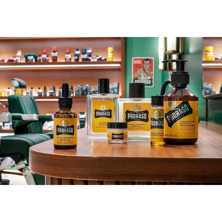 Le nettoyant pour barbe de Proraso est un nettoyant doux, mais efficace pour la barbe et la peau. Cette formule peu moussante agit pour adoucir et lisser la barbe tout en éliminant la saleté, les débris et les odeurs. Le parfum masculin de bois et d'épices se compose de bois fins, avec un cœur de cèdre et des notes de rose de roche, de cumin épicé, de safran et de vanille légèrement sucrée.