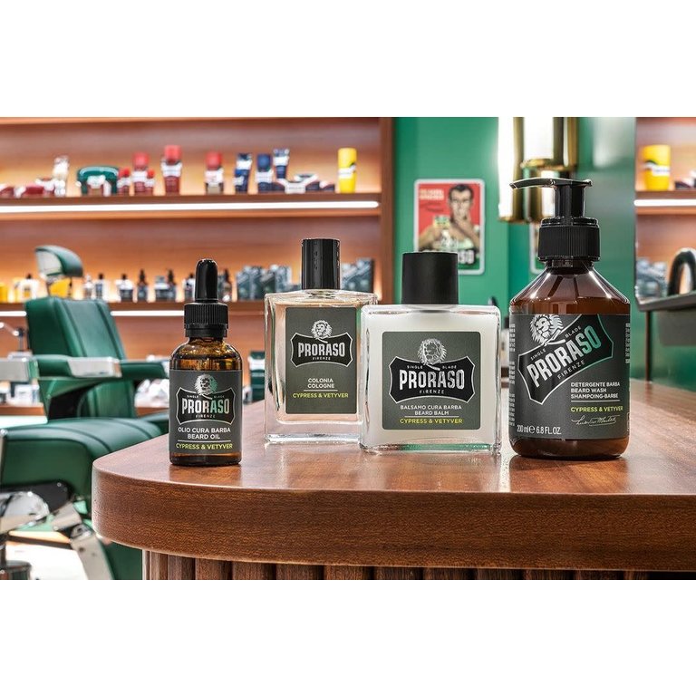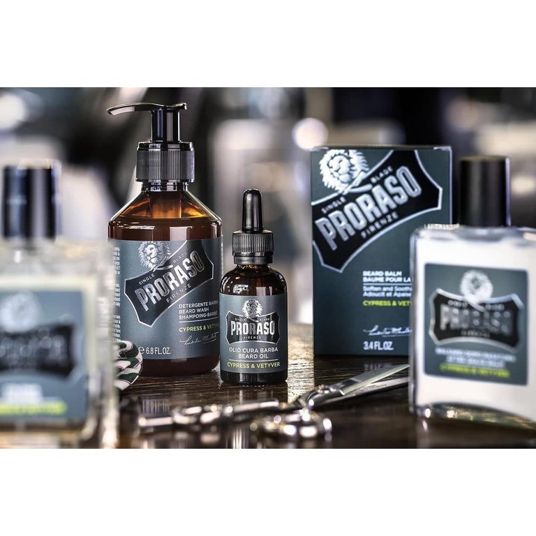 Le shampoing pour la barbe de Proraso est un nettoyant doux, mais efficace pour la barbe et la peau. Utilisant des surfactants à base de plantes, cette formule peu moussante agit pour adoucir et lisser même les barbes les plus poilues tout en éliminant la saleté, les débris et les odeurs. Comprends le parfum frais et incomparable de Cyprès & Vetiver.