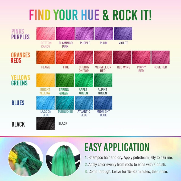 Facile d’utilisation, c’est une coloration directe, qui ne nécessite aucun oxydant. Une couleur intense et audacieuse qui tient jusqu'à 35 lavages! Des nuances ultra-vibrantes au départ, qui s'atténuent progressivement pour un résultat tout en douceur.