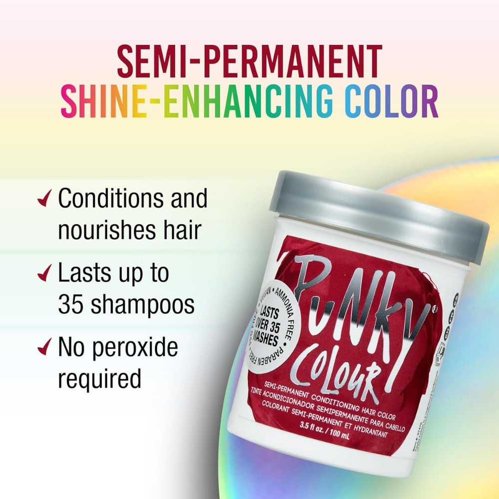 La coloration semi-permanente Punky Colour est reconnue pour ses couleurs vives et originales, parfaite pour les passionnés de couleur audacieuses. Elle est enrichie d'un mélange d'ingrédients naturels ultra-nourrissants. Sublimez l'éclat de votre couleur, la force et la brillance de vos cheveux sans craindre de les abîmer ni de les dessécher avec sa formule douce sans ammoniaque.