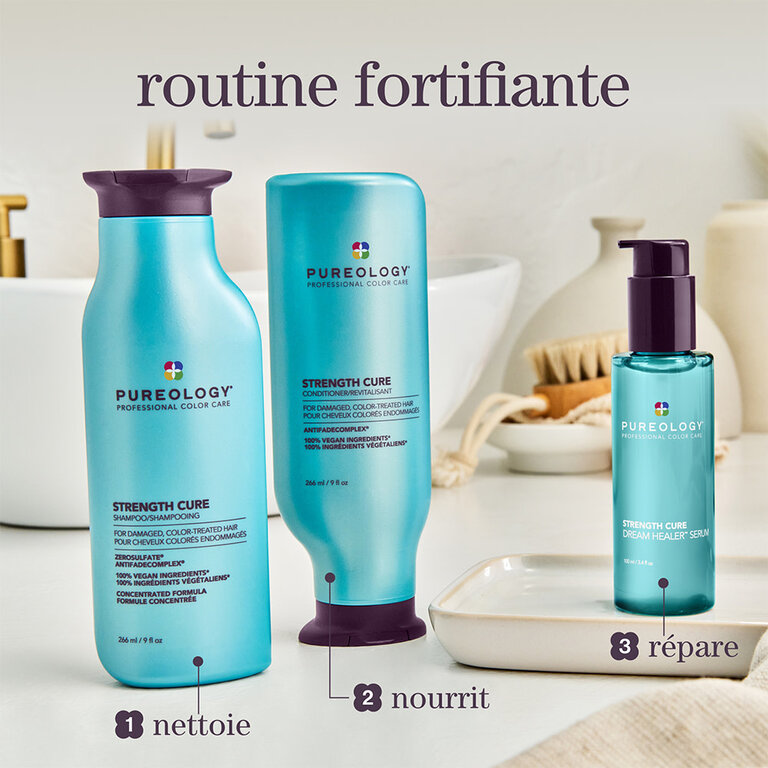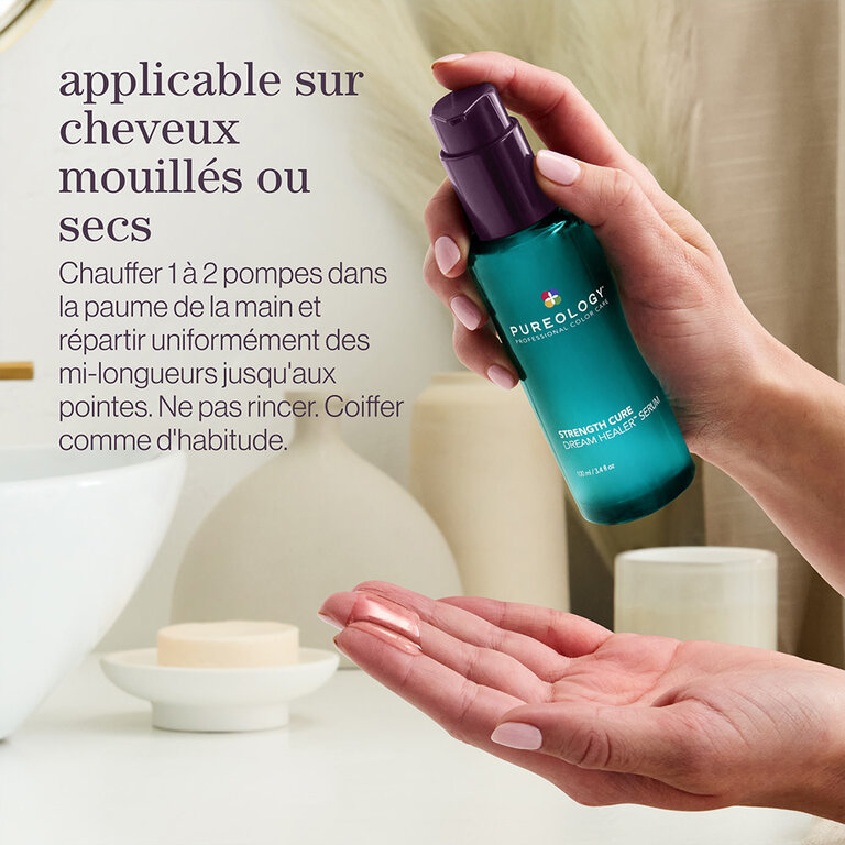 Découvrez la puissance du sérum "Strength Cure Dream Healer" par Pureology, un concentré d'innovation pour des cheveux qui retrouvent leur intégrité. Formulé pour restaurer jusqu'à 99 % de la force naturelle et réduire la casse de 85 %, ce sérum léger, mais performant améliore l'élasticité de vos cheveux tout en diminuant visiblement l'apparence des pointes fourchues.