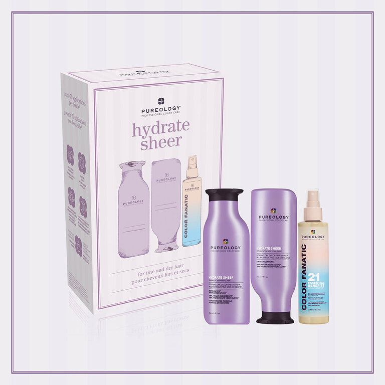 Transformez vos cheveux fins, secs et colorés grâce trio hydratant léger "Hydrate" de Pureology. Cette routine de soins innovante agit pour rééquilibrer la nutrition de vos mèches déshydratées, leur apportant la vitalité et la douceur nécessaires sans excès de richesse. Le shampoing et le revitalisant "Hydrate" infusent la juste dose de nutrition à votre chevelure, sans jamais les surcharger. Ils transforment les cheveux normaux à fins, les laissant plus doux et plus sains. Le spray sans rinçage "Color Fanatic" combine 21 fonctions pour prendre soin de votre couleur et de vos cheveux en même temps, en leur apportant une revitalisation intense et une douceur exceptionnelle.