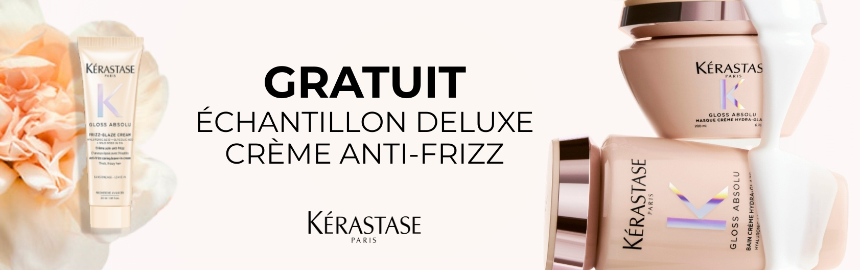 Pour une durée limitée, achetez 2 produits Gloss Absolu de format régulier de votre choix et recevez un échantillon format Deluxe (30ml) de la Crème sans rinçage Anti-Frizz Gloss Absolu.