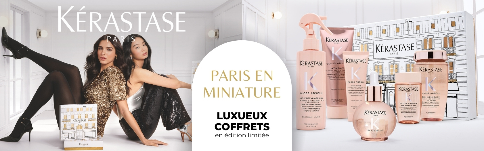 Explorez Paris en miniature avec les fabuleux coffrets capillaires du temps des fêtes de Kérastase. Offerts en édition limitée, ils vous sont offerts à 25% de rabais et comprennent un Bain (shampoing), un Fondant (après-shampoing) et un Fluide pour faciliter le coiffage. Les gammes disponibles cette année sont : Blond Absolu, Curl Manifesto, Genesis, Gloss Absolu, Nutritive et Première. Si vous ne connaissez pas la gamme, découvrez-là avec les Trios découvertes composés de formats voyages.