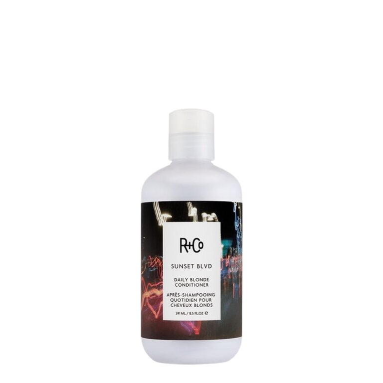 Le revitalisant quotidien cheveux blonds "Sunset Blvd" de R+CO élimine les tons cuivrés, rend les reflets blonds ultra-brillants les reflets gris somptueusement argentés. Suffisamment doux pour un usage quotidien, il démêle efficacement, éclaircis les nuances et reflets blonds, tout en ajoutant une luminosité sublime. Sa formule enrichie d'extrait de perle végétale, de pousse de tournesol et de glycérine protège des rayons UV nocifs, revitalise, renforce et ajoute une hydratation équilibrée, laissant la chevelure douce, souple et saine.