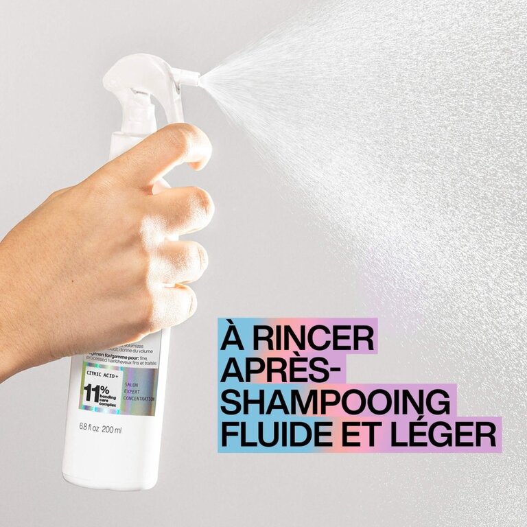 L'après-shampoing liquide et léger "Acidic Bonding Concentrate" de Redken, est un après-shampoing vaporisable contenant des combinaisons stratégiques d'agents conditionneurs et d'agents de liaison. Formulé sans silicone, cet après-shampoing liquide aide à renforcer les liens faibles lors d'une utilisation continue pour donner de l'adhérence et de la douceur aux cheveux fins hautement traités, sans les alourdir. Ce conditionneur est rapidement absorbé par la fibre capillaire et se rince facilement sans laisser de résidu ou de couche indésirable. Avec une utilisation continue, il apporte 1,5 fois plus de force et de douceur à l'intérieur du cheveu, avec un fini léger qui a du corps et du volume.
