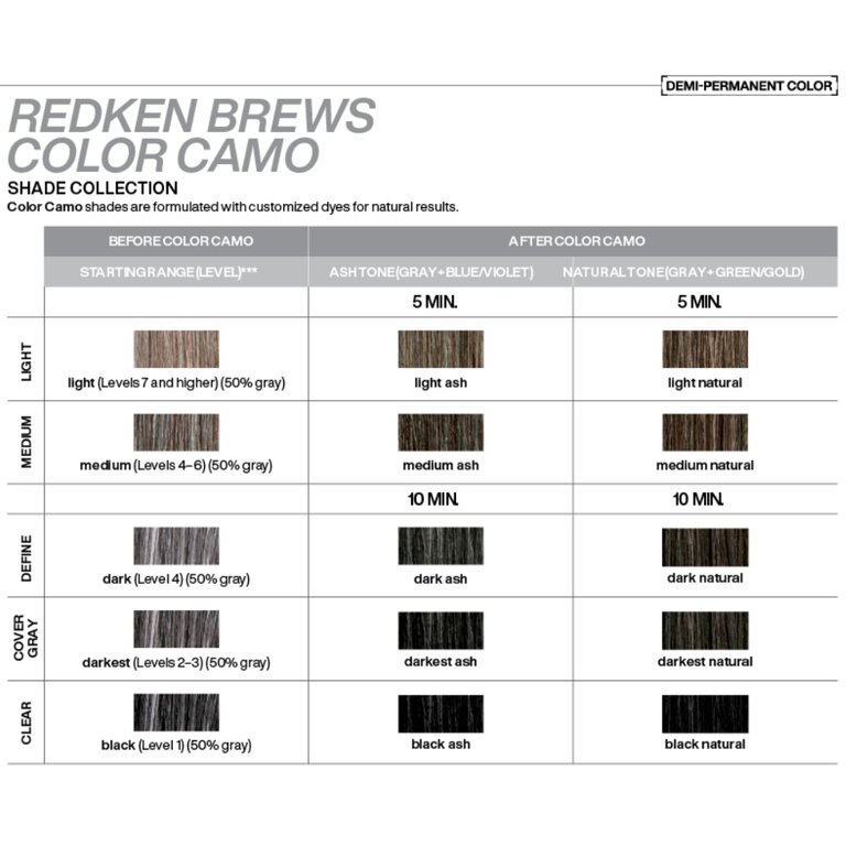 La coloration semi-permanente pour hommes "Color Camo" de Redken est spécialement conçue pour estomper et camoufler les cheveux gris de manière subtil et naturelle. Obtenez des cheveux d'apparence plus jeune en seulement 5 minutes. Disponible en 10 nuances miscibles entre elles pour des résultats personnalisés qui garantissent un résultat subtil et facile d'entretien.