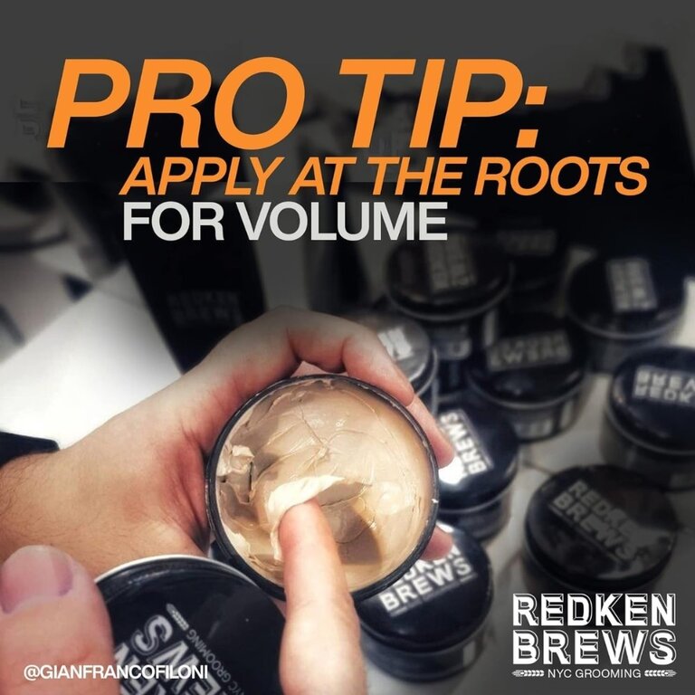 Frottez une petite quantité de pommade d'argile Redken Brews dans les mains et passez sur cheveux humides ou secs pour coiffer.