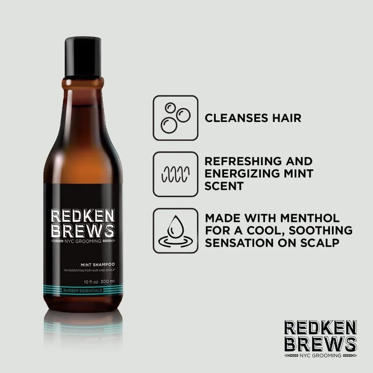 Le shampoing revigorant à la menthe de Redken Brews nettoie les cheveux et procure une sensation rafraîchissante sur le cuir chevelu.