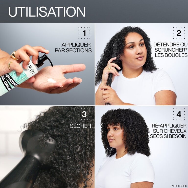 Appliquez de nouveau sur les cheveux secs pour dompter les frisottis, redéfinir les boucles et hydrater les cheveux.