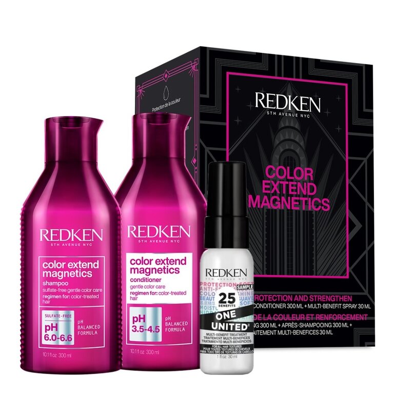 Voici le soin de coloration capillaire sans sulfate qu'il vous faut, sous forme de shampoing et d'après-shampoing pour cheveux colorés, avec le duo soins pour la couleur "Color Extend Magnetics" de Redken. Son complexe de protéines RCT est un système intelligent exclusif d’application ciblée qui traite les cheveux de la racine jusqu’à la pointe en passant par le cœur, délivrant les nutriments à ces 3 niveaux en fonction de leurs besoins.