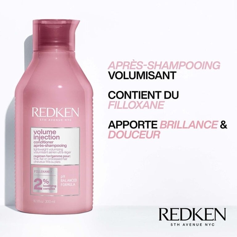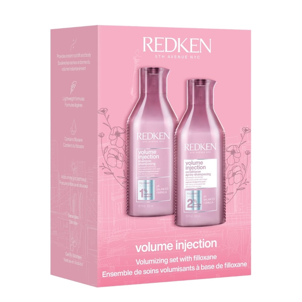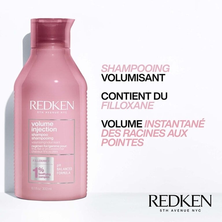 Le duo soin volumisant "Volume Injection" de Redken est spécialement conçue pour les cheveux fins et plats en manque de volume. Formulé à base de Filloxane, un ingrédient breveté par Redken, cet ensemble de soins agit en profondeur pour épaissir la fibre capillaire de l'intérieur et apporter un volume durable aux cheveux. Les cheveux sont visiblement plus denses, plus épais et plus volumineux.