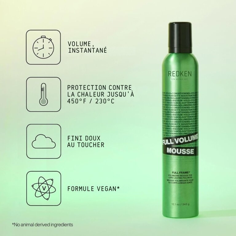 La mousse volumisante "Full Volume" de Redken est une mousse revitalisante qui amplifie le volume, des racines aux pointes. Sa formule non asséchante enrichie de polymères apportent instantanément de la densité et de l'épaisseur aux mèches, tout en procurant une douceur incomparable.