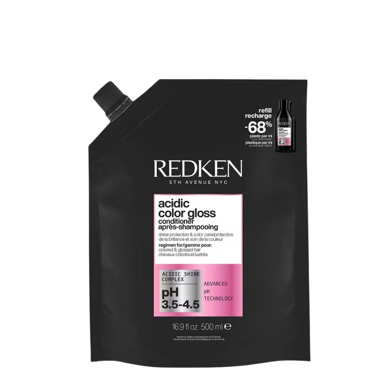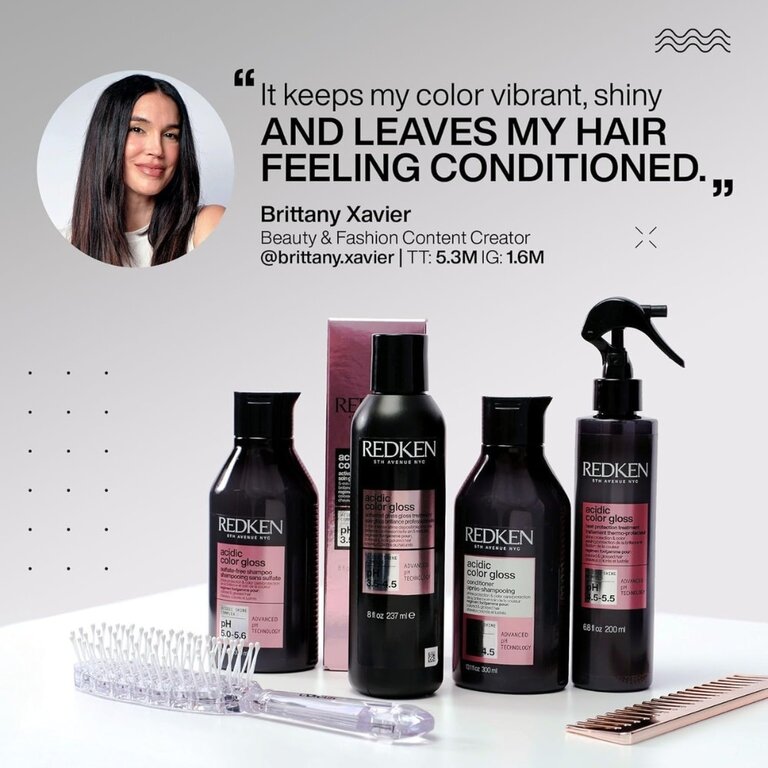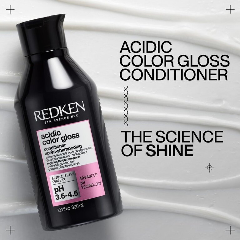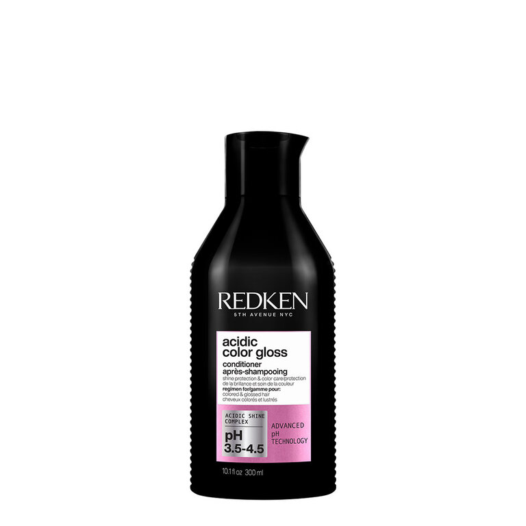 Le revitalisant "Acidic Color Gloss" par Redken est un après-shampoing innovant et révolutionnaire qui prolonge la couleur, conditionne et procure une brillance digne d'un salon. Élaborée par des chimistes, ce conditionneur ultra démêlant offre une couleur éclatante longue durée jusqu'à 32 lavages et dépose une brillance intense au niveau moléculaire pour des cheveux jusqu'à 76 % plus brillant. Sa formule au pH acide enrichie d'acides aminés et de vitamine E aide à sceller la cuticule et à maintenir la brillance pour protéger la couleur de l'affadissement et du ternissement pouvant être causé par l'eau et la chaleur. Et pour celles qui n’ont pas de couleur dans leurs cheveux, pas de problème! Cette routine peut aussi être utilisée sur les cheveux non colorés pour apporter plus de brillance et d’éclat au cheveu naturel.