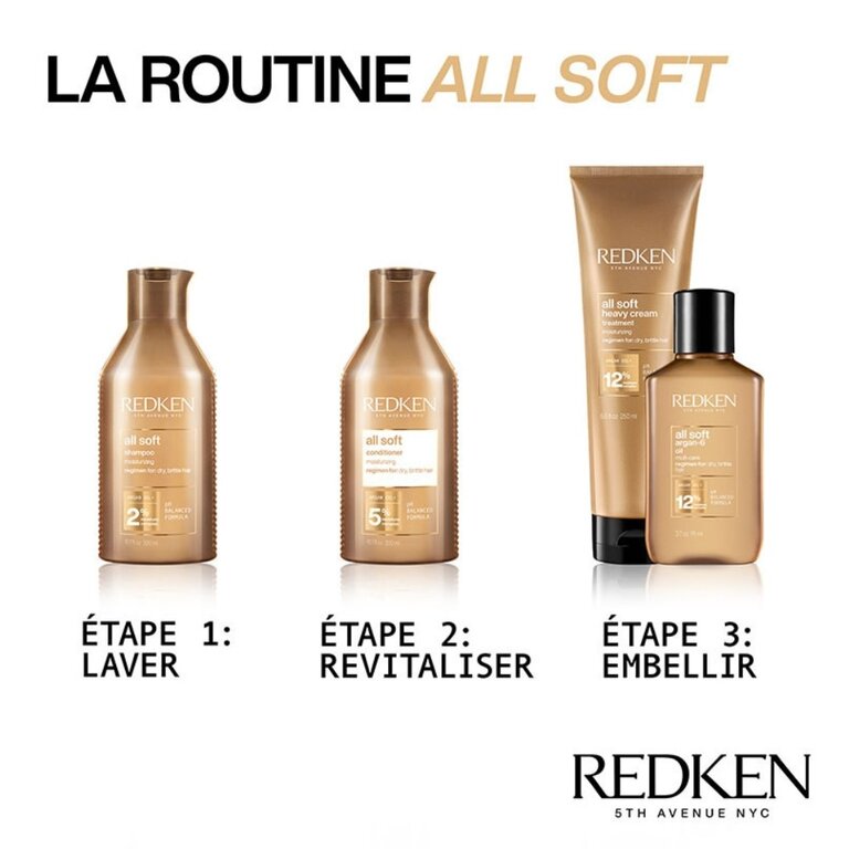 Après avoir lavé vos cheveux avec le shampoing "All Soft", appliquer le conditionneur et répartir sur l’ensemble de la chevelure. Rincer abondamment.