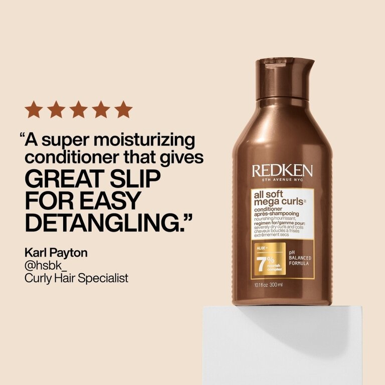 Le revitalisant nourrissant "All Soft Mega Curls" de Redken a été développé pour démêler sans effort les cheveux bouclés extrêmement secs et crépus, tout en améliorant leur maniabilité. En plus de procurer des boucles rebondies, cet après-shampoing pour cheveux frisés hydrate intensément, définit les boucles et réduit les frisottis jusqu'à 72h, tout en ajoutant un maximum de douceur et de brillance. Sa formule adoucissante est composée d'aloès et de glycérine pour nourrir et éviter le dessèchement des cheveux, minimisant par conséquent, l'apparence des dommages. De plus, il est composé d'huile d'Inca Inchi et d'extrait de fleur de cactus qui fournissent une action revitalisante hydratante élevée qui favorise des cheveux visiblement plus forts et plus brillants, en plus d'être plus facile à coiffer.