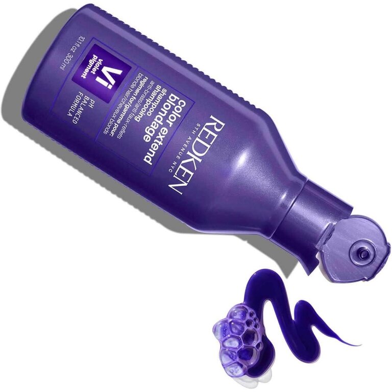 Le shampoing "Color Extend Blondage" est un shampoing ultra violet neutralisant formulé pour tonifier et renforcer les cheveux blonds et méchés. Il contient de l'acide salicylique qui renforce et répare les cheveux blonds depuis l'intérieur, ainsi que des pigments violets purs qui éliminent les tons jaunes et cuivrés indésirables et laissent les blonds froids et éclatants. Il crée des mèches lumineuses de la racine à la pointe. Cette formule nettoie en douceur et adoucit les cheveux.