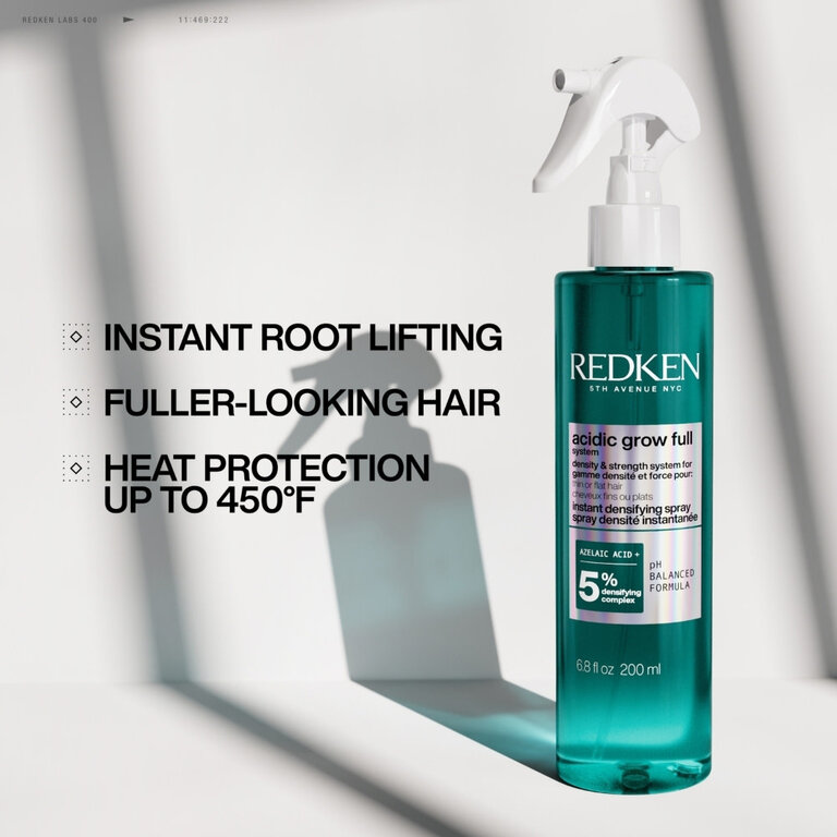 Luttez contre l’affinement et la casse avec le spray densité instantanée "Acidic Grow Full" de Redken, une solution haute performance conçue pour un soulèvement immédiat des racines. Ultime étape du protocole, ce soin sans rinçage assure un gain de masse de 17% doublé d'une protection thermique jusqu'à 230°C. Sa formule, concentrée à 5 % en complexe actif, fortifie instantanément la fibre afin de limiter la chute due à la casse et de redonner du corps à la chevelure. Retrouvez des cheveux visiblement plus épais, denses et au diamètre amplifié.