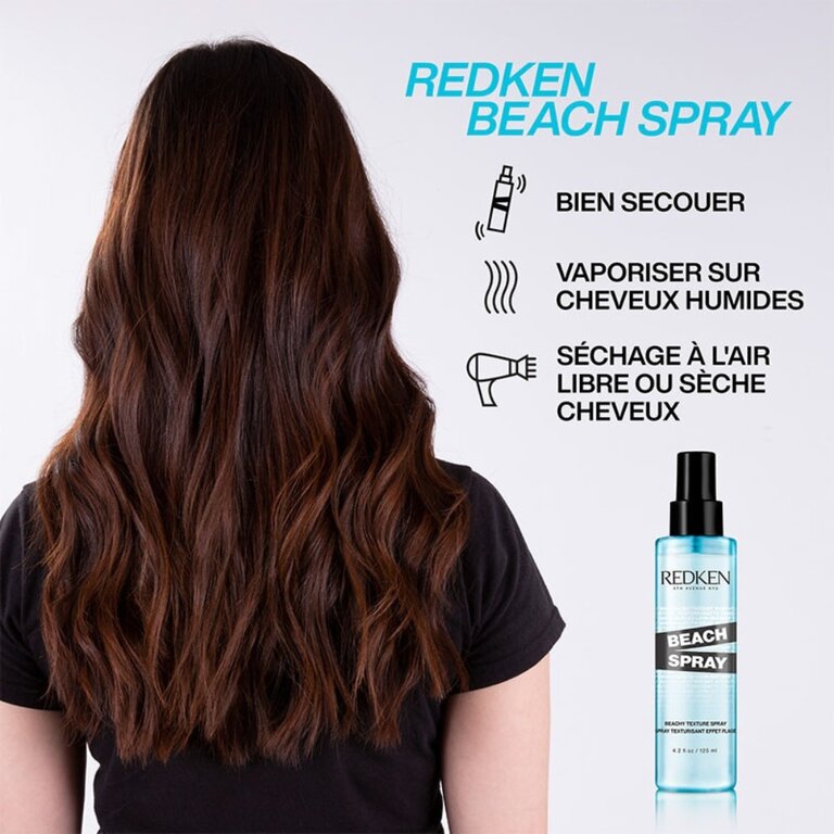 Le spray "Beach Spray" de Redken comprend une combinaison de copolymères texturants pour fournir un corps et un mouvement durables pour un look ébouriffé, fraîchement sorti de la plage et complètement ondulé.