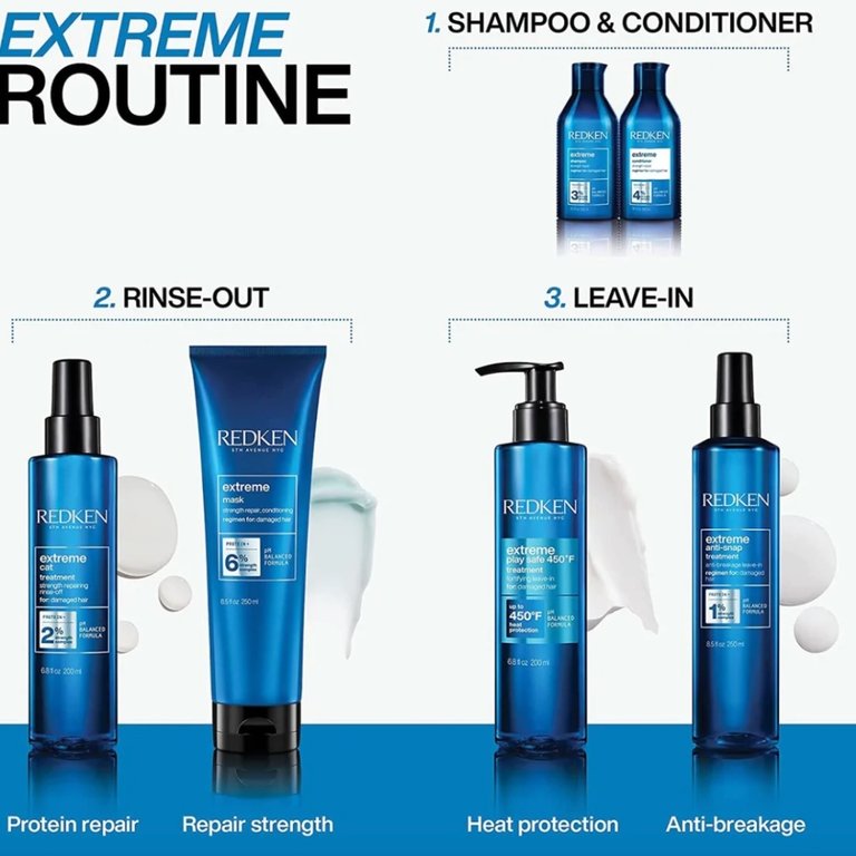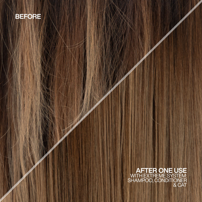 Le traitement avec rinçage reconstructeur infusé de protéines "Redken Extreme CAT" ajoute une puissance immédiate aux cheveux abîmés tout en renforçant les mèches contre la casse des cheveux. "CAT" est formulé avec le complexe de force de Redken et aide à préparer les cheveux avant les services chimiques pour prévenir les dommages futurs.